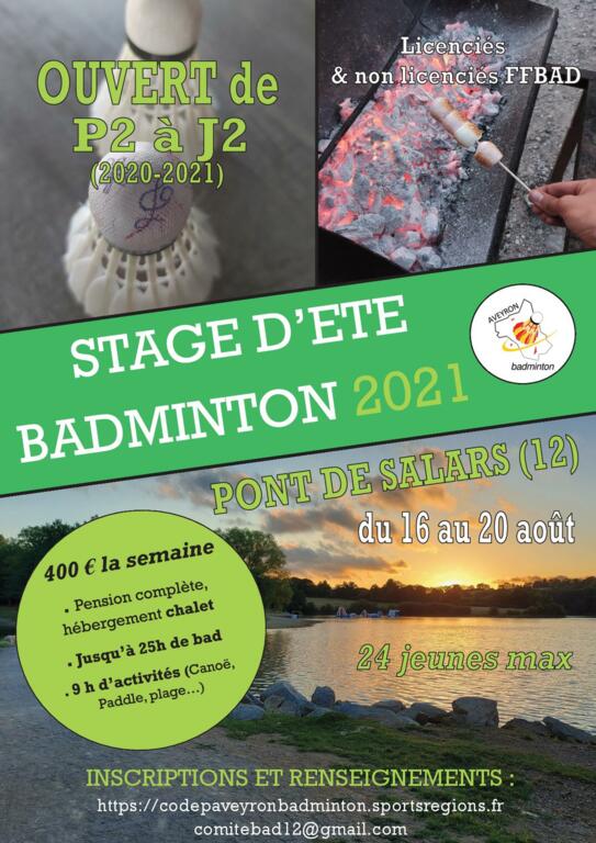 Les inscriptions au stage d'été 2021 sont ouvertes.