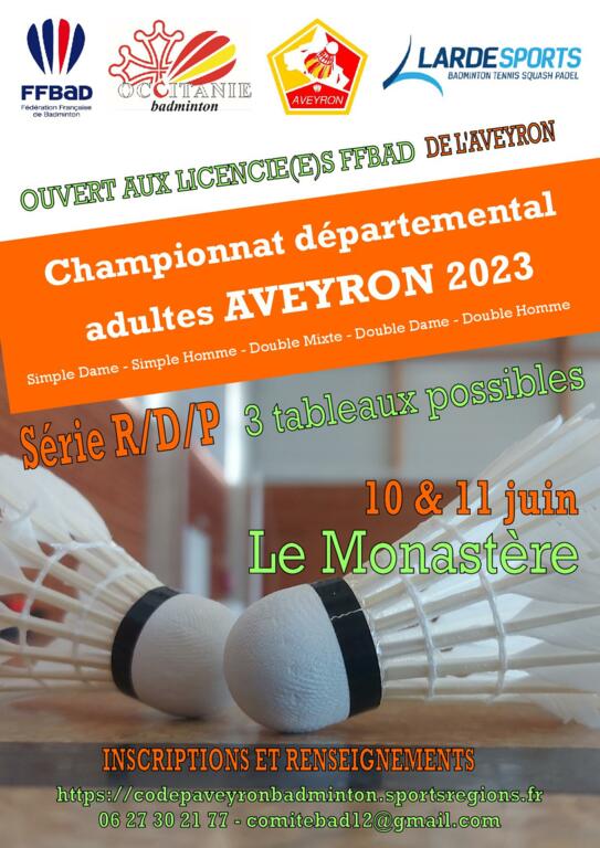 Les inscriptions sont à envoyer à : comitebad12@gmail.com avant le 1er juin.