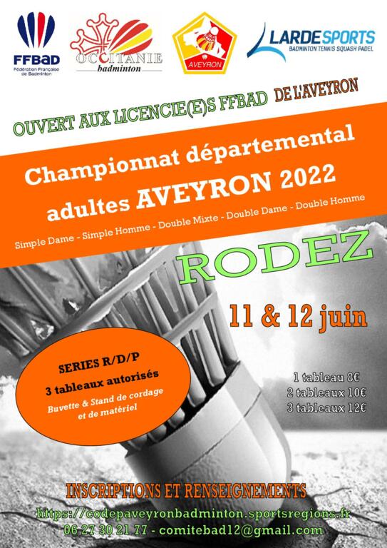 Les inscriptions sont à envoyer à : comitebad12@gmail.com avant le 02 juin.