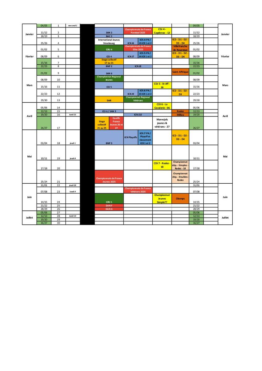 Mise à jour du Calendrier